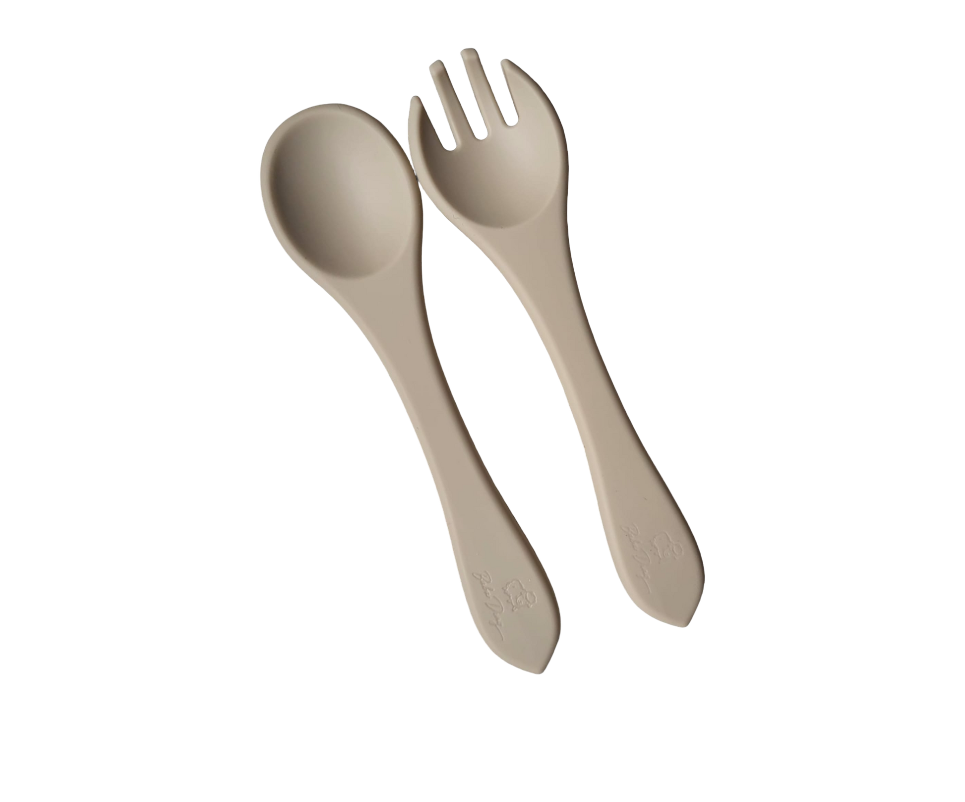 Bestek: Een kindvriendelijke bestekset die perfect past in kleine handjes, helpt bij het zelfstandig leren eten.
